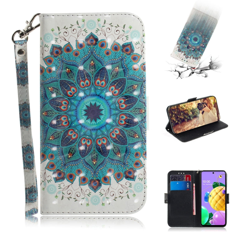 Funda de Cuero Abatible Horizontal para LG K62 K52 Q52 con Dibujo 3D Soporte Ranuras Tarjetas Billetera Cordón