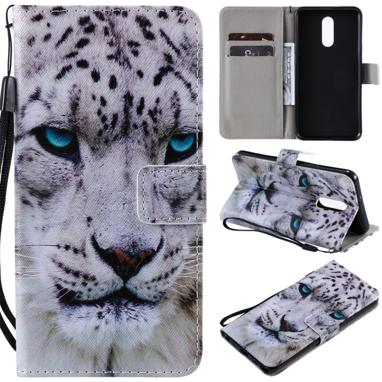 Funda de Cuero para LG Stylo 5 con Tapa Horizontal, Billetera, Soporte, Ranuras para Tarjetas y Cordón (Leopardo Blanco)