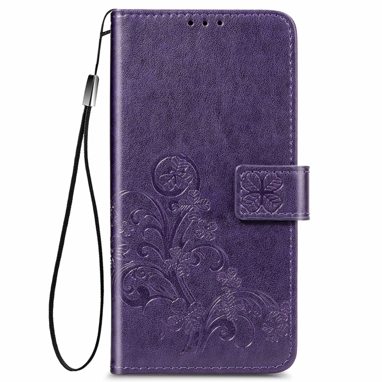 Funda de Cuero para LG Stylo 7 4G con Cierre de Cuatro Hojas, Ranura para Tarjeta y Soporte (Púrpura)