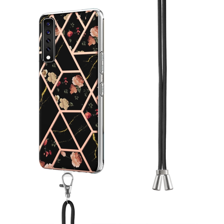 Funda TPU para LG Stylo 7 4G con patrón de flores de mármol, electrochaplating, a prueba de golpes y cordón (Flor Negra)
