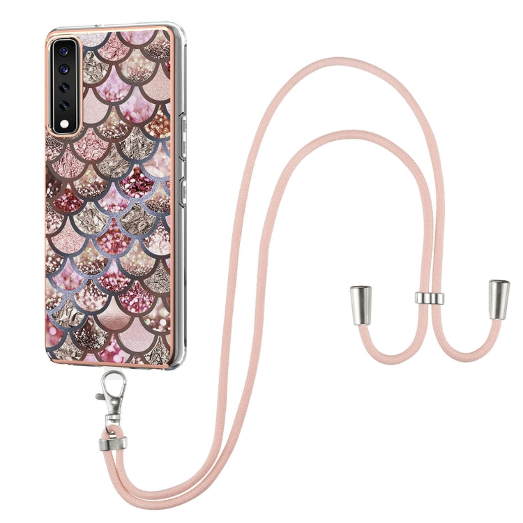 Funda TPU LG Stylo 7 4G Patrón Galvanoplastia Imd a Prueba de Golpes con Cordillero (Escamas Rosadas)