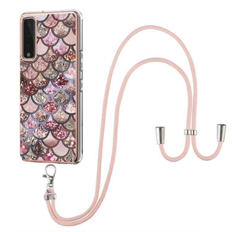 Funda TPU LG Stylo 7 5G a Prueba de Golpes con Cordón y Patrón Galvanoplastia (Escamas Rosas)