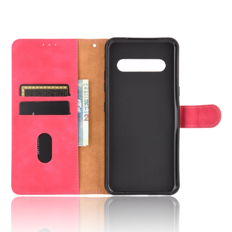 Funda de Cuero para LG V60 Thinq 5G con Hebilla Magnética, Soporte y Ranuras (Rosa Roja)
