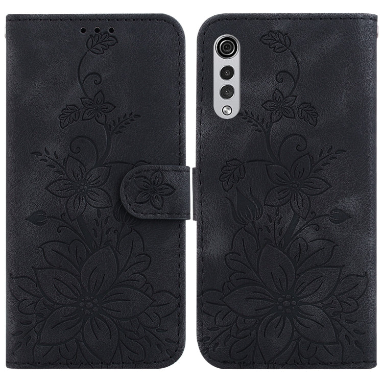 Estuche para Teléfono LG Velvet 4G 5G G9 Cuero En Relieve Lily (Negro)