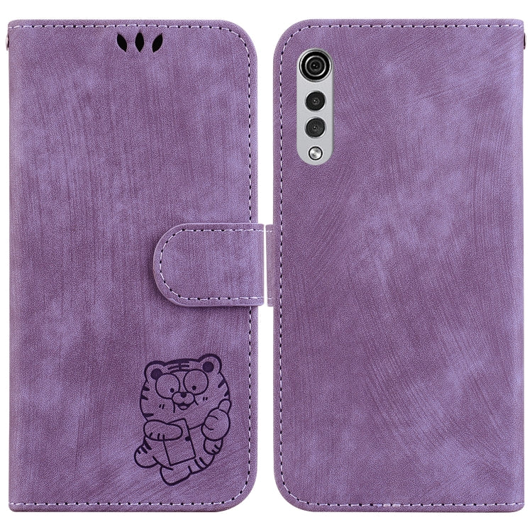 Funda para Teléfono LG Velvet 4G 5G G9 Cuero con Relieve Little Tiger (Púrpura)
