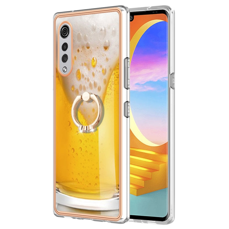 Funda para LG Velvet 5G / 4G / G9 Velvet Galvanoplastia Doble Cara con Soporte para Anillo (Cerveza de Barril)