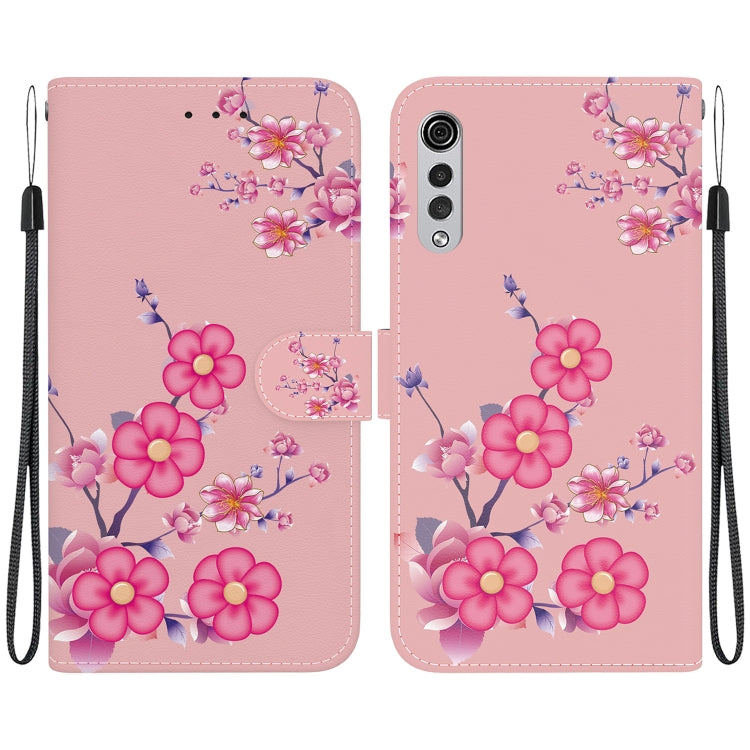 Estuche de Cuero para LG Velvet y G9 con Dibujo Coloreado y Textura de Cristal (Flores de Cerezo)