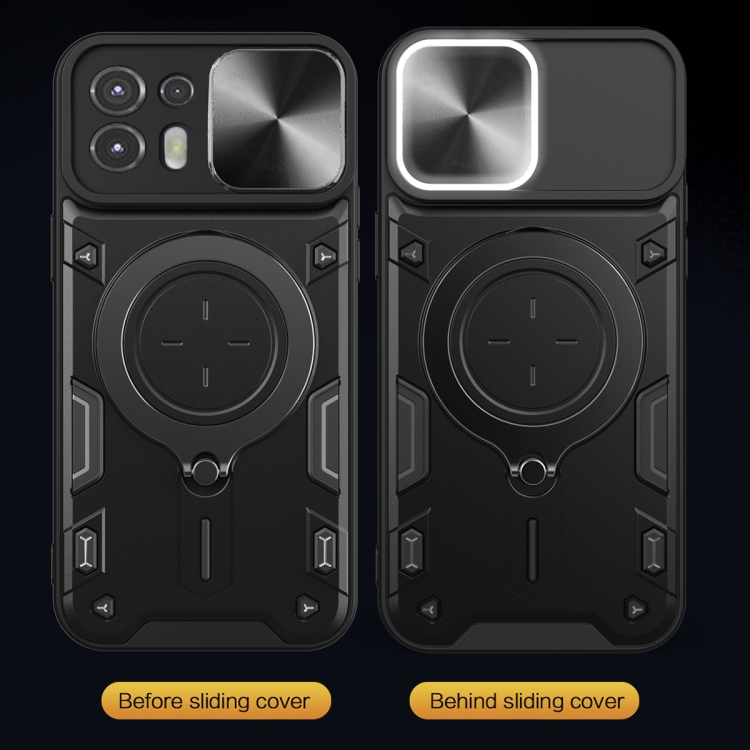 - 1x Funda para Motorola Edge 20 Lite con Textura Deslizante Camshield y Soporte Magnético (Negro)