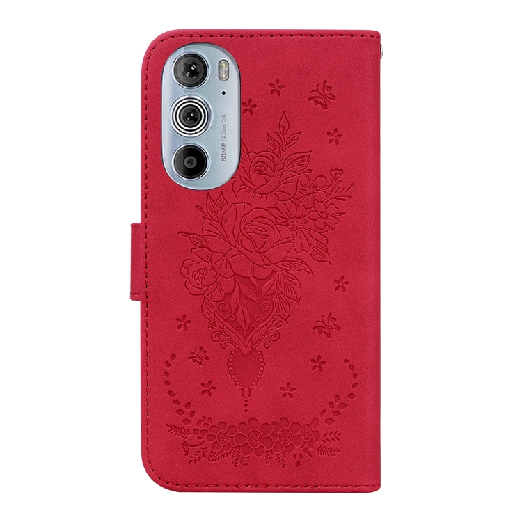 Para Motorola Edge+ 2022 / Edge 30 Pro Butterfly Rose Rose Foothip en relieve de cuero (rojo)
