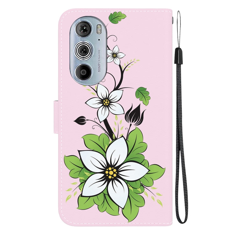 Estuche de Cuero para Motorola Edge + (2022) con Dibujo Coloreado y Textura de Cristal (Lirio)