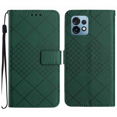 - 1x Funda de Cuero para Motorola Edge + (2023) y Edge 40 Pro con Textura de Rejilla Rómbica (Verde)