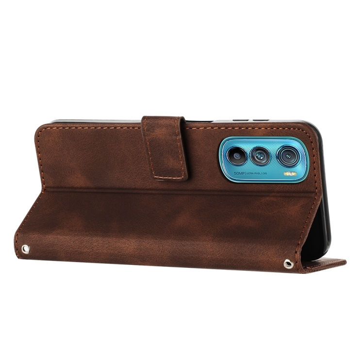 Funda de Cuero para Motorola Edge 30 Dream Triangle con Cordón (Marrón)