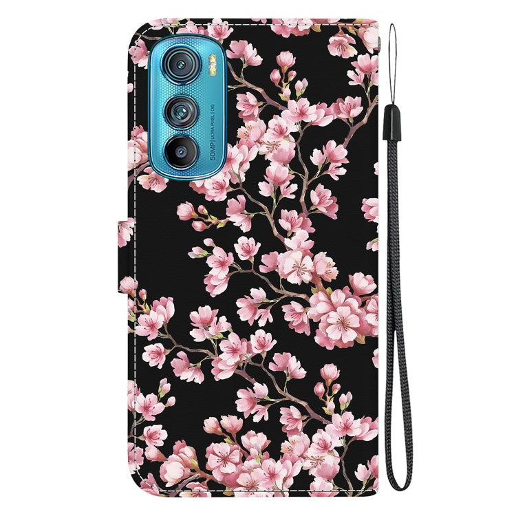 Funda para Motorola Edge 30 de Cuero con Dibujo Coloreado y Textura de Cristal (Flor de Ciruelo)