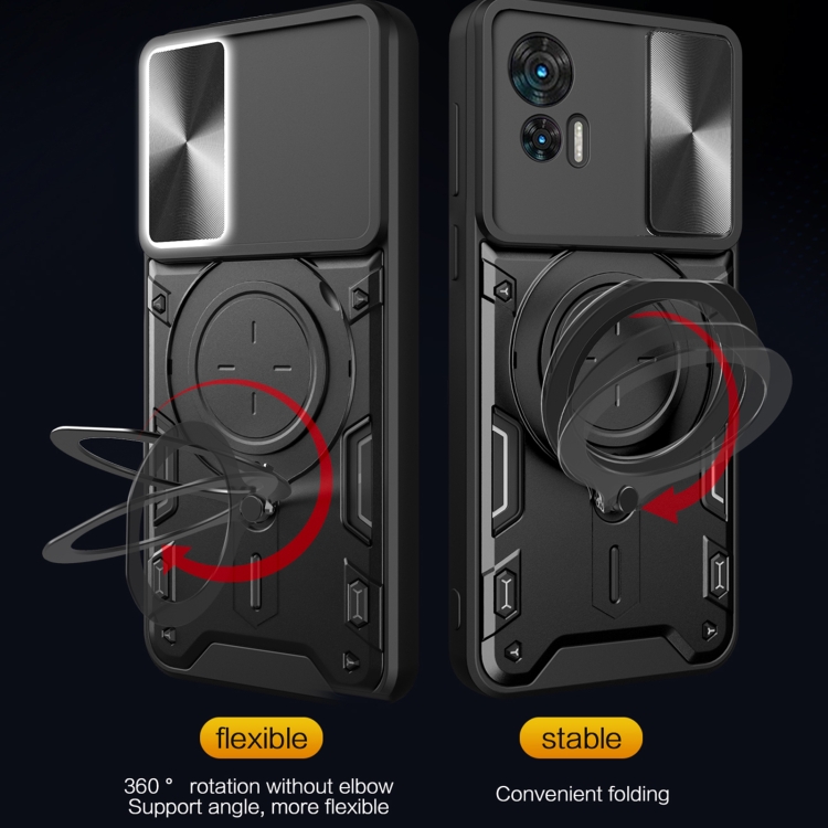 Funda para Motorola Edge 30 Neo con Textura Deslizante Camshield y Soporte Magnético (Azul)