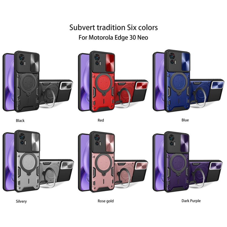 - 1x Funda para Motorola Edge 30 Neo con Textura Deslizante Camshield y Soporte Magnético (Negro)