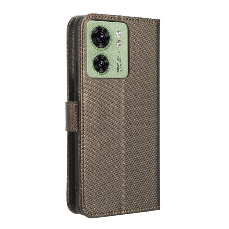 Funda de Cuero para Motorola Edge 40 con Textura de Diamante (Marrón)
