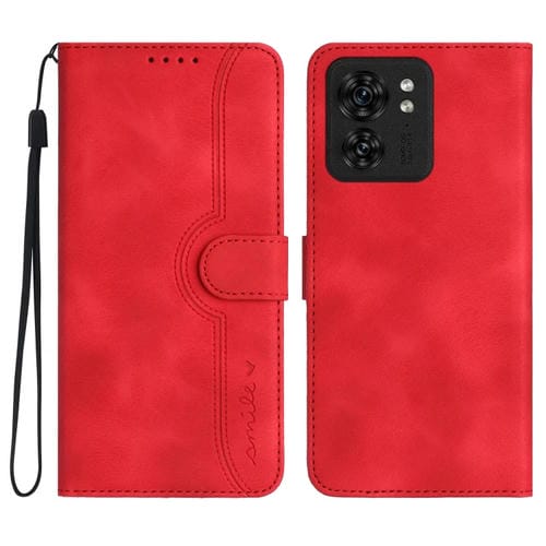 - 1x Funda de Cuero para Motorola Edge 40 con Sensación de Piel y Patrón de Corazón (Rojo)
