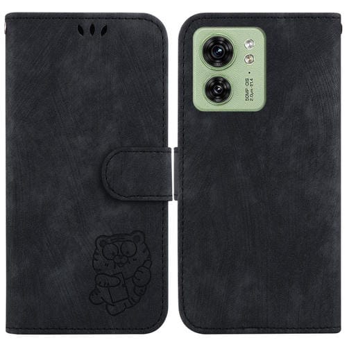 Funda de Cuero para Motorola Edge 40 con Relieve Little Tiger (Negro)
