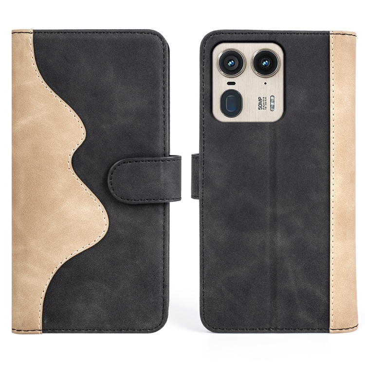Funda de Cuero para Motorola Edge 40 con Tapa Horizontal y Costuras (Negro)