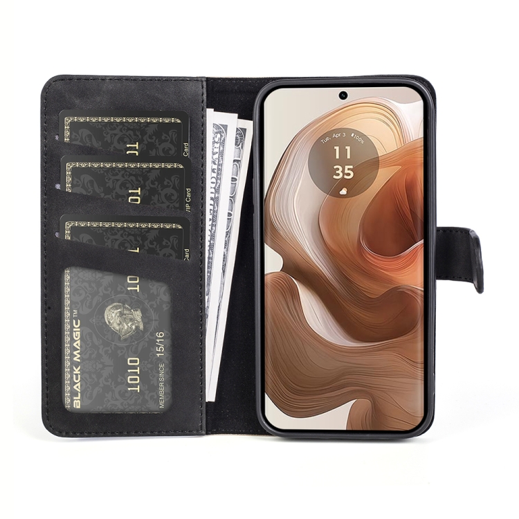 La Funda de Cuero para Motorola Edge 40 con Tapa horizontal y costuras en color Negro está diseñada para ofrecer una protección integral y funcionalidad avanzada. Fabricada con materiales PU y TPU de alta resistencia, esta Funda combina durabilidad y comodidad para el usuario. Su diseño incluye una ranura para Tarjetas y función billetera, permitiendo almacenar elementos esenciales sin sacrificar la accesibilidad. Además, cuenta con un Soporte integrado que facilita la visualización en posición horizontal, ideal para reproducir contenido multimedia. La Funda permite el acceso Completo a todos los Botones, Puertos de Carga y Conexión para Auriculares, sin necesidad de retirarla, garantizando así una experiencia de uso práctica y segura para el Motorola Edge 40.
