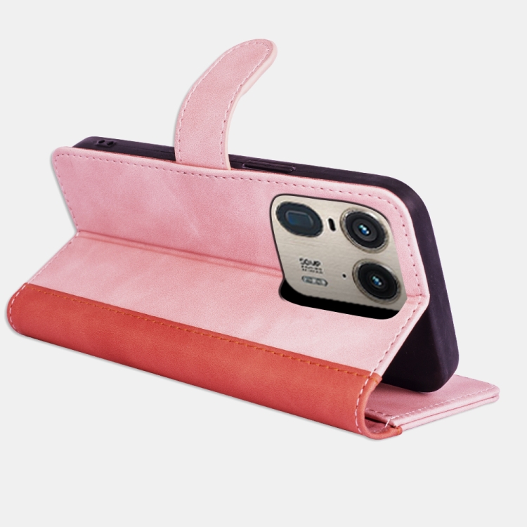 Funda de Cuero para Motorola Edge 40 con Tapa Horizontal y Costuras (Rojo)