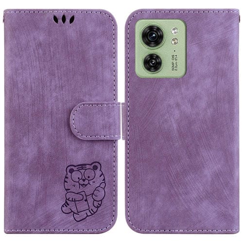 - 1x Funda para Motorola Edge 40 de Cuero con relieve Little Tiger (Púrpura)