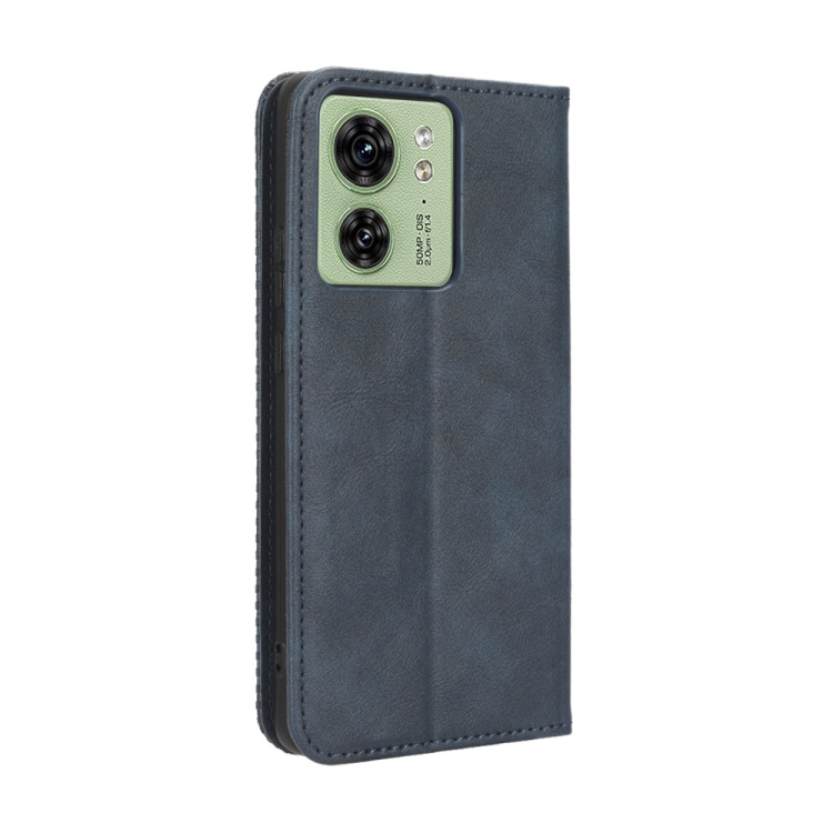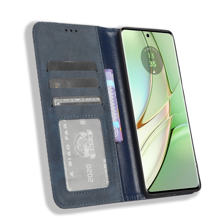 Funda de Cuero con Hebilla Magnética para Motorola Edge 40 Textura Retro (Azul)