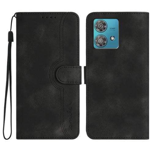 Funda de Cuero para Motorola Edge 40 Neo 5G con Sensación de Piel y Patrón de Corazón (Negro)