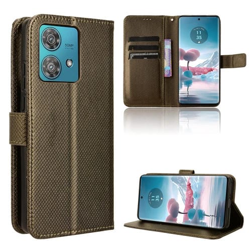 Funda de Cuero para Motorola Edge 40 Neo 5G con Textura de Diamante (Marrón)