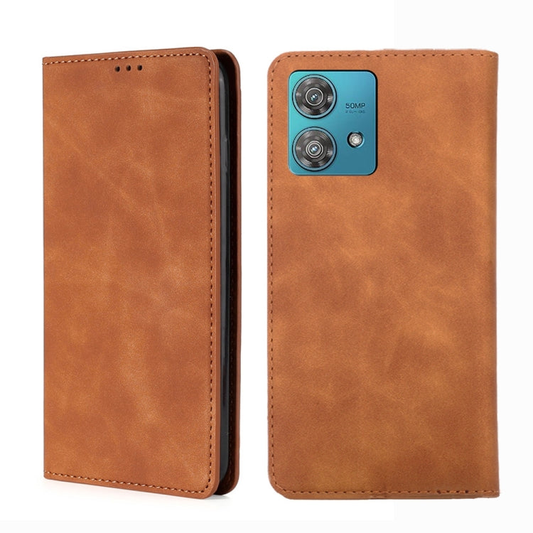 Funda de Cuero Magnética para Motorola Edge 40 Neo 5G Skin Feel (Marrón Claro)