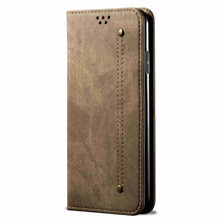 Funda de Cuero con Tapa para Motorola Edge 40 Neo Denim Texture (Caqui)