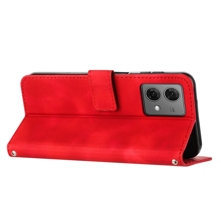 Funda de Cuero para Motorola Edge 40 Neo Dream Triangle con Cordón (Rojo)