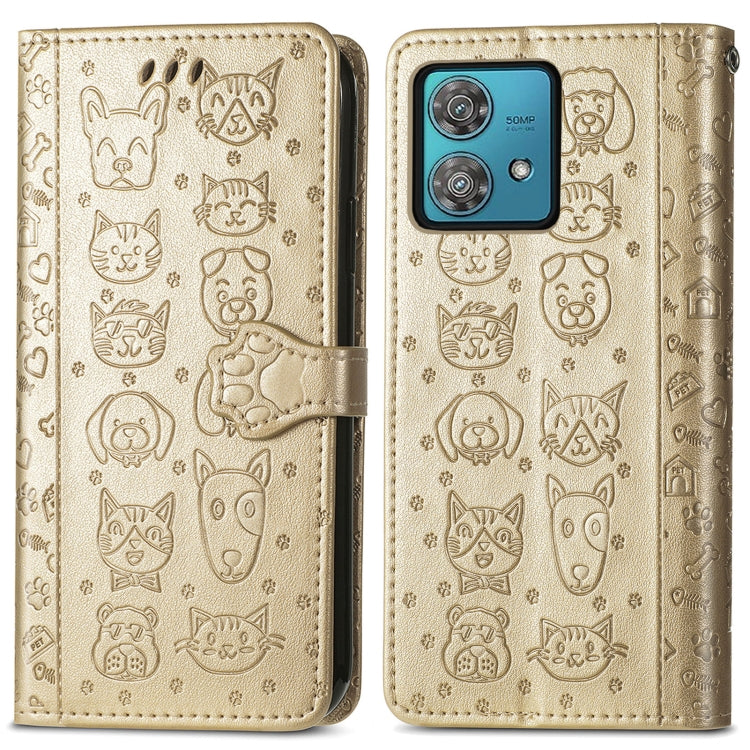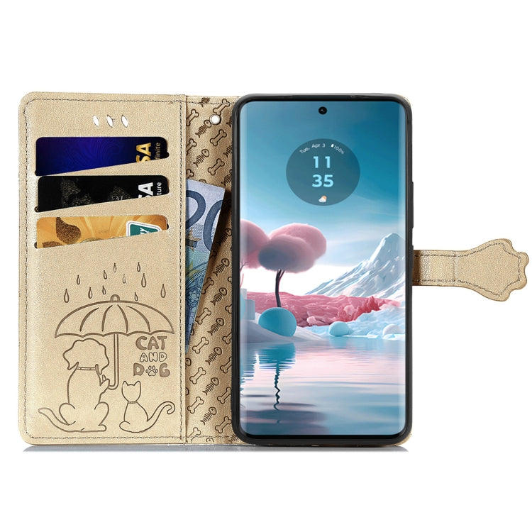 Funda para Motorola Edge 40 Neo de Cuero con Relieve de Perro y Gato (Dorado)