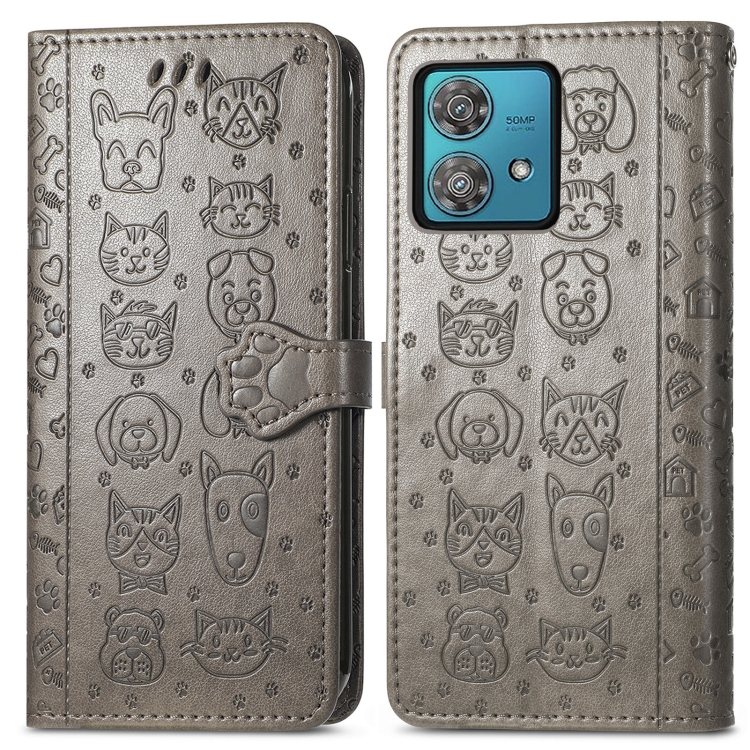 Funda para Motorola Edge 40 Neo de Cuero con Relieve de Perro y Gato (Gris)