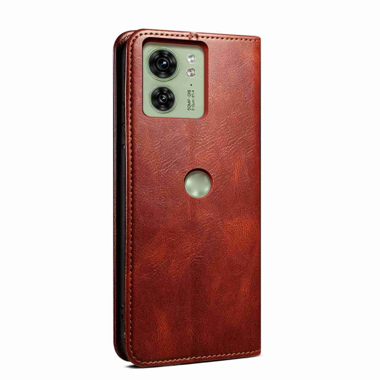 Funda de Cuero Motorola Edge 40 Oil Wax Crazy Horse Texture para Teléfono (Marrón)