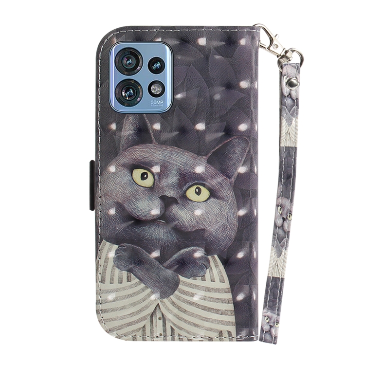 Estuche de Cuero para Motorola Edge 40 Pro con Tapa Horizontal y Diseño 3D (Hug Cat)