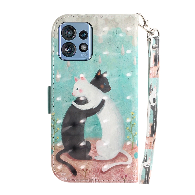 Funda de Cuero para Motorola Edge 40 Pro con Tapa Horizontal y Diseño 3D (Gato Blanco y Negro)