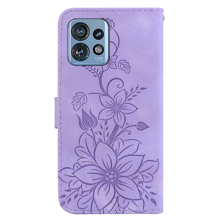 For Motorola Edge 40 Pro Lily Embossed Leather Phone Case (Purple)