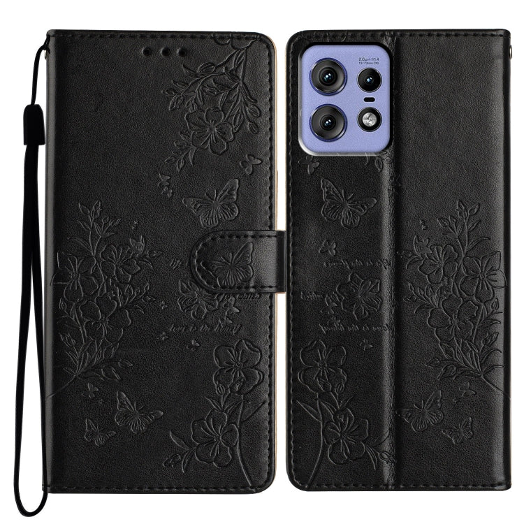 Funda de Cuero para Motorola Edge 50 Pro con Mariposas y Flores (Negro)
