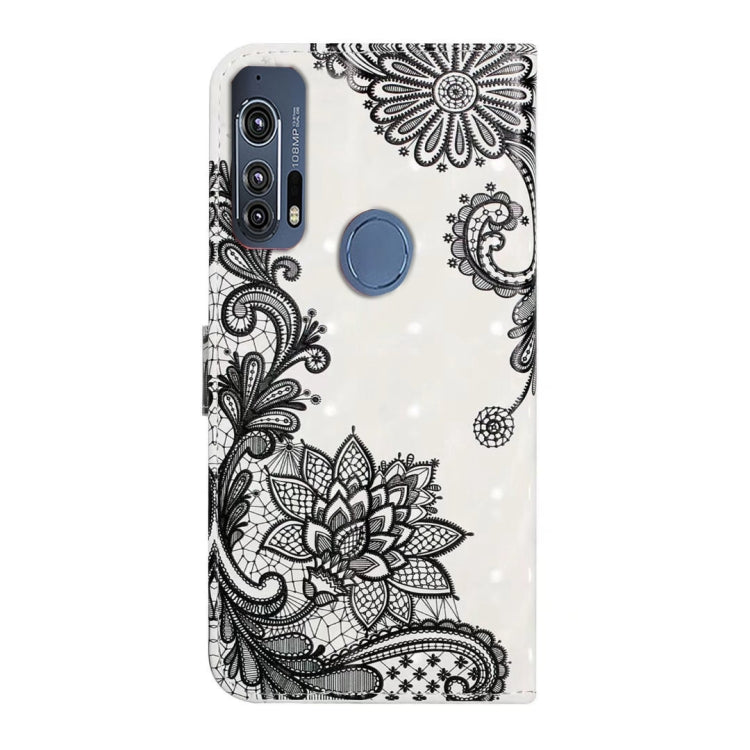 Funda de Cuero para Motorola Edge + con Dibujo 3D en Relieve al Óleo (Flor de Encaje)