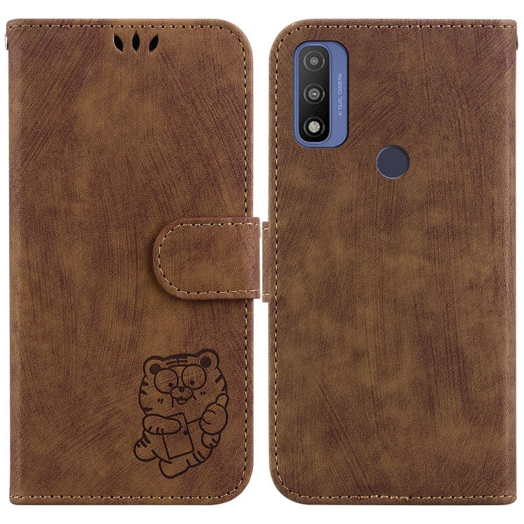 Funda de Cuero en Relieve para Motorola G Pure Little Tiger (Marrón)