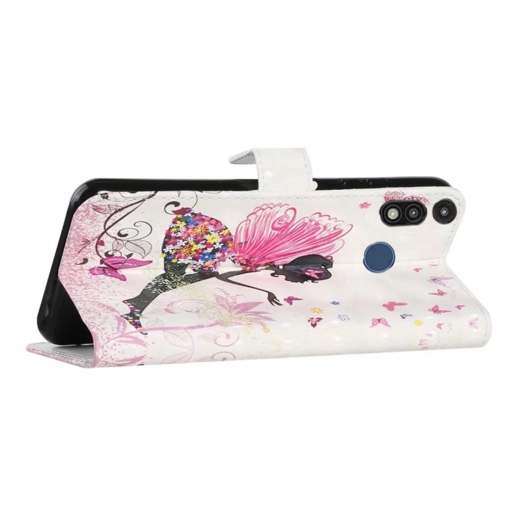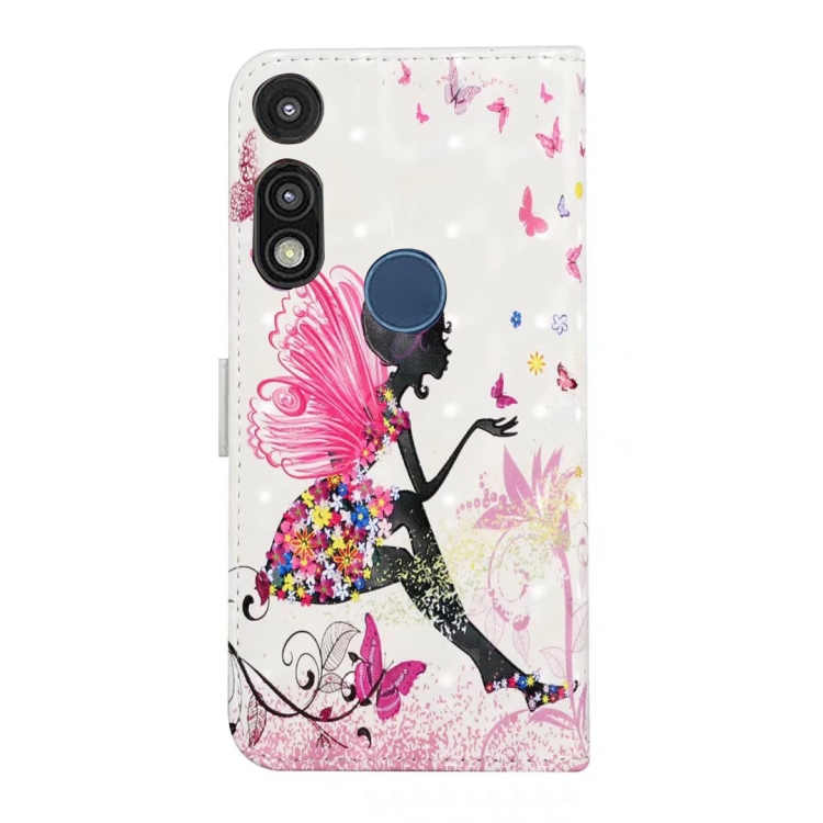 Funda de Cuero para Motorola Moto E 2020 con Dibujo 3D en Relieve al Óleo (Hada de Flores)