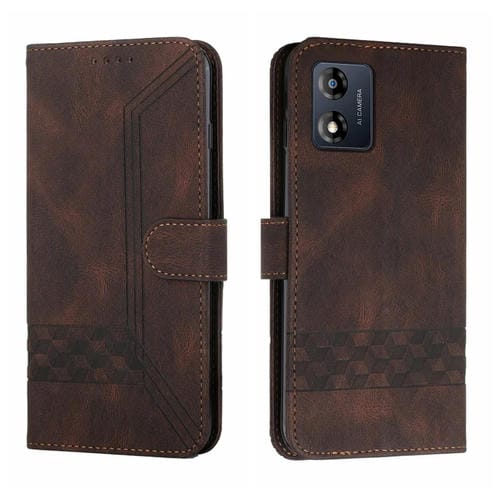 For Motorola Moto E13 Cubic Skin Feel Leather Flip Phone Case Cover (Brown)