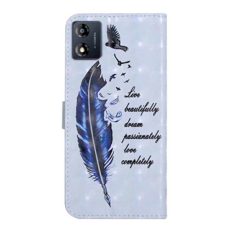 Funda de Cuero para Motorola Moto E13 con Dibujo 3D en Relieve al Óleo (Pluma Azul)