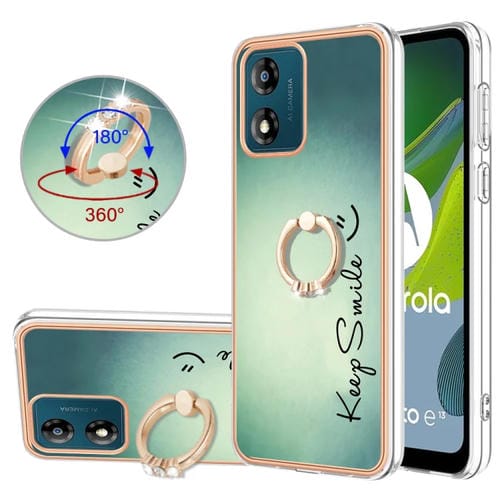 Funda para Motorola Moto E13 Galvanoplastia IMD Doble Cara con Soporte para Anillo (Sonrisa)