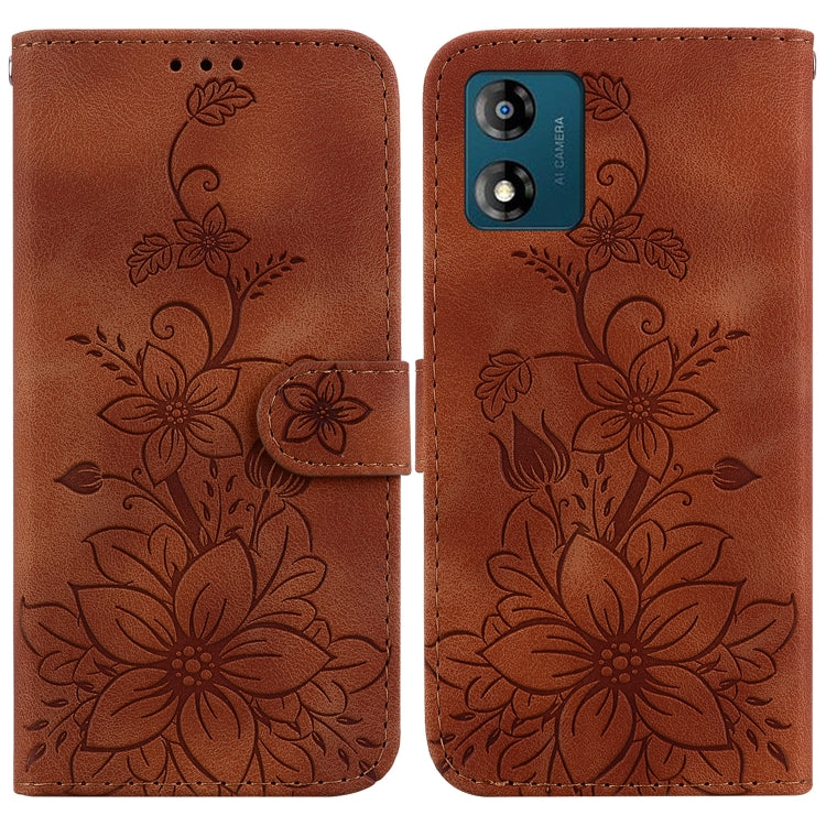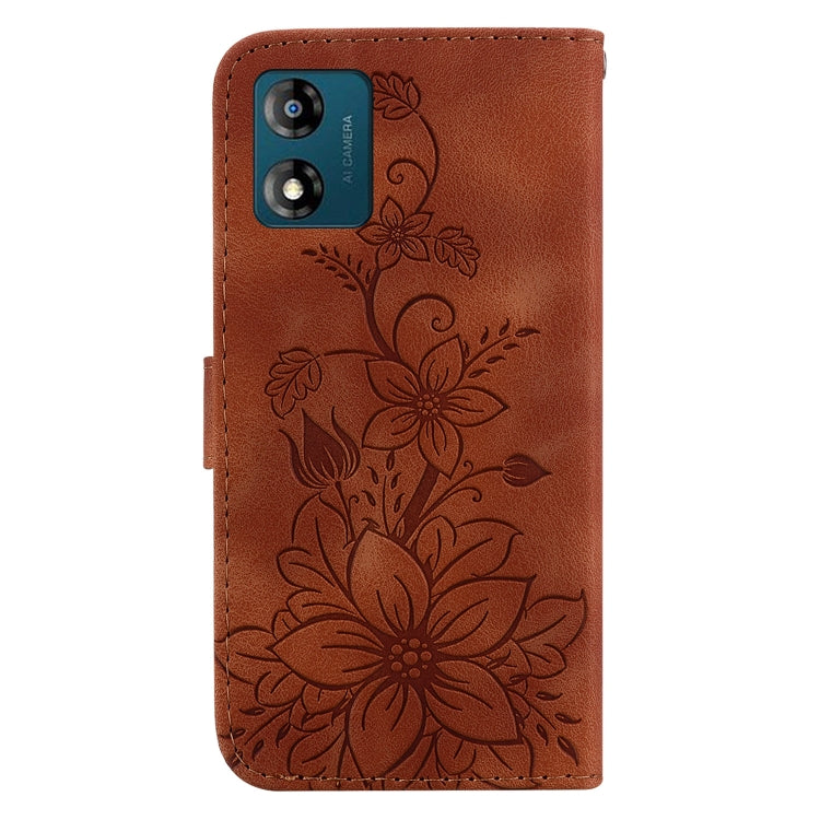 Funda de Cuero para Motorola Moto E13 Lily en Relieve (Marrón)