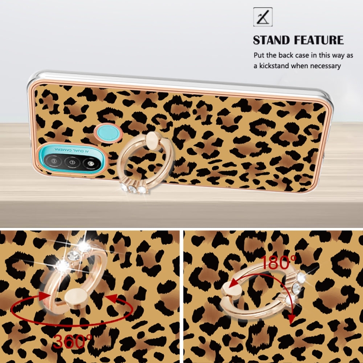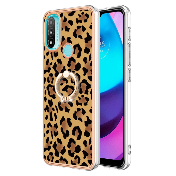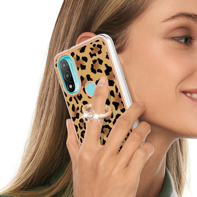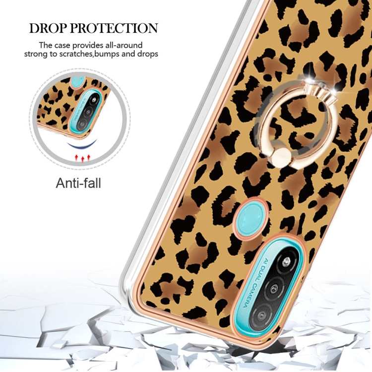 Caja de teléfono Motorola Moto E20 E30 E40 IMD doble cara galvanizada con Soporte anillo (Leopardo)