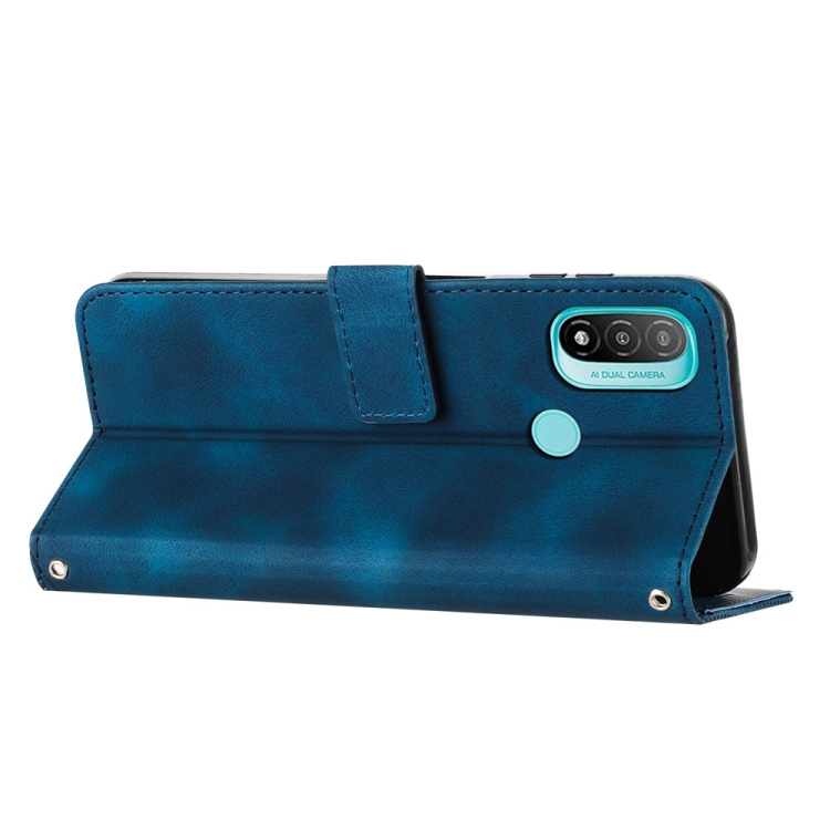 Funda de Cuero para Motorola Moto E20 E30 E40 Dream Triangle con Cordón (Azul)