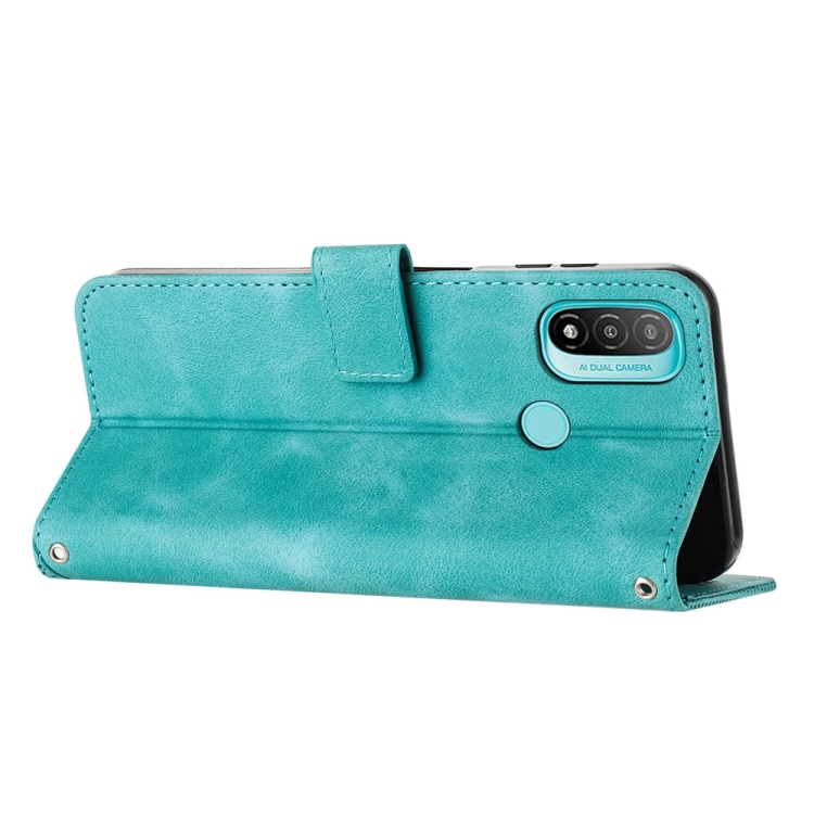 Funda de Cuero para Motorola Moto E20 / E30 / E40 Dream Triangle con Cordón (Verde)