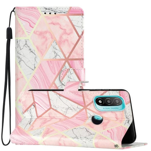 Estuche para Motorola Moto E20 E30 E40 de Cuero con Dibujo Coloreado Mármol Rosa